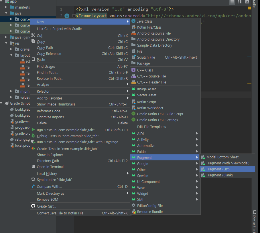 slide 실습이기 때문에 프래그먼트는 손대지 않음