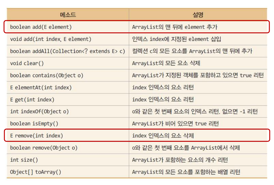 ArraryList<E> :가변 크기를 구현한 클래스